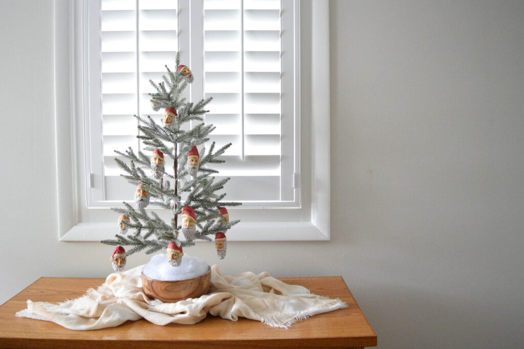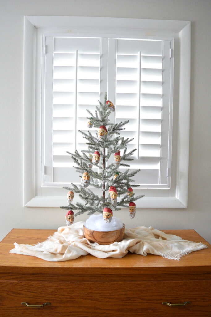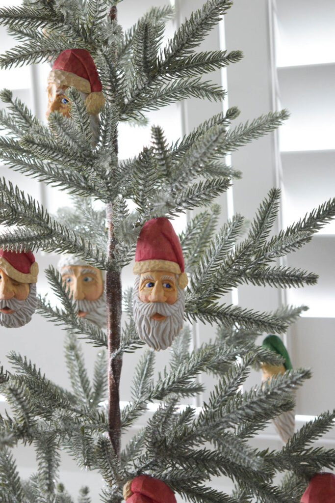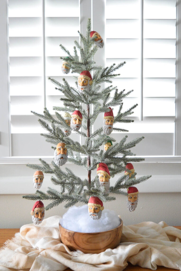 Y’all, small trees really let your ornaments and design shine through. The tree becomes less of a beautiful, majestic show stopper and more of a vessel for your storytelling design. I knew that I wanted the focus to be on each individual primitive Santa Claus. That way their personality and craftsmanship could really shine!