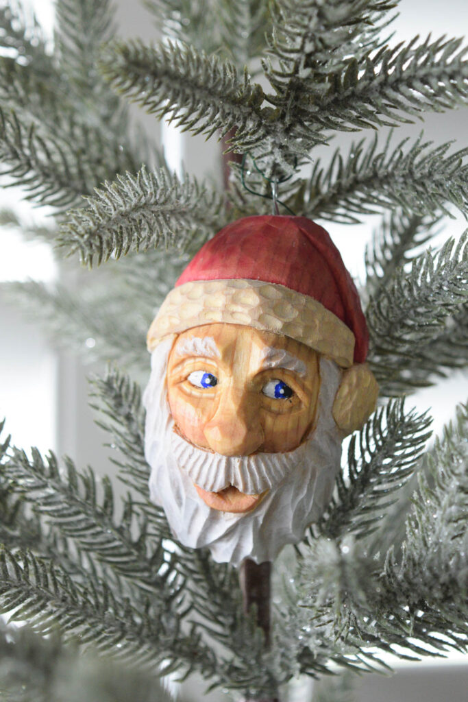 This Santa Claus tree is deeply meaningful to me. It’s a representation of the woodworking tradition on my dad’s side of the family. My grandpa was an incredible woodworker and a lover of Christmas. He started carving later in life, and he usually chose to carve Santas. Sharing his love of Christmas, I would fawn all over his creations when we went to visit. So every year, he started carving me (and other members of the family) an original Santa Claus.