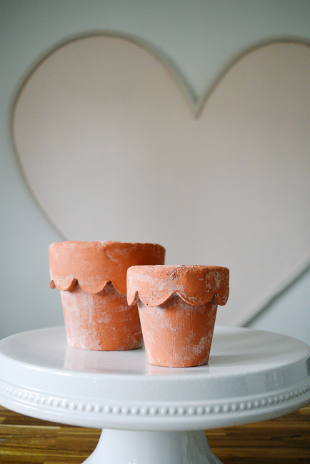 I’m always ready for spring. About a week after New Year’s Day, I’m over winter. I want sunshine and flowers and leaves back on the trees. To prep for what will surely be a small haul of plants in the next month, I made this adorable scallop edge terracotta pot!